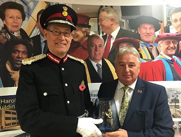 AvSax managing director Richard Bailey pictured receiving his Queen's Award for Enterprise from the Lord Lieutenant of West Yorkshire, Ed Anderson.